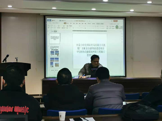 徐永兵同志介紹了哈倫能源項目的特點,對于拱形筒殼結構,公司首次采用從山墻起步吊裝的新工藝,取得了明顯的經(jīng)濟效益;同時,對網(wǎng)架分區(qū)的必要性和經(jīng)濟性進行了分析。
