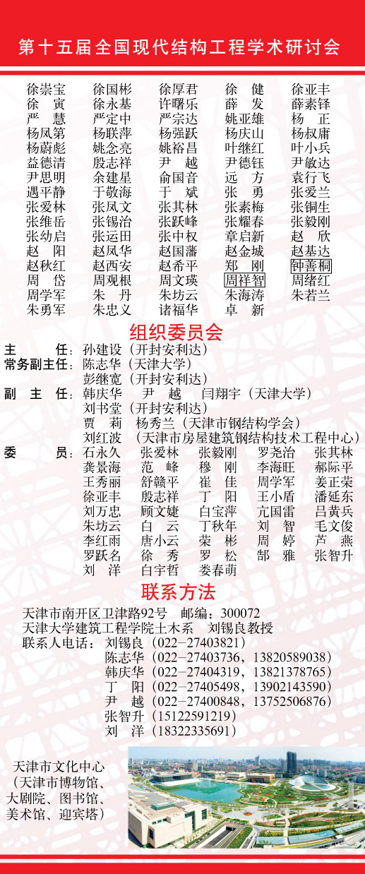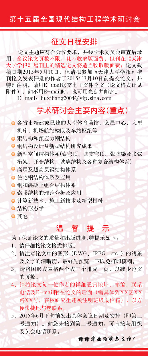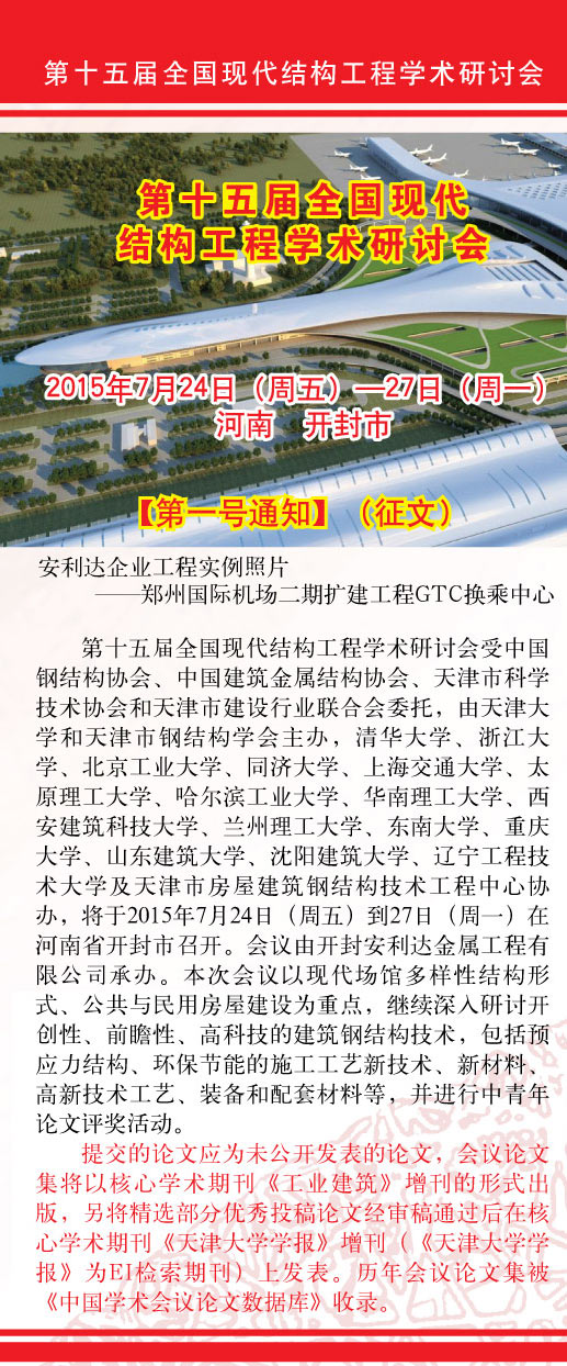 熱烈祝賀第十五屆全國現代結構工程學術研討會【第一號通知】(征文)順利下發