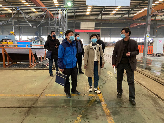 魏蕾一行首先來到安利達生產車間,走訪考察了公司復工復產后承接的越南出口項目的生產情況,并對目前生產復工情況作了細致詢問,“復工做了哪些準備”“工人從哪里召集”“目前原材料的供應”“下步有什么打算”,劉書堂副總一一作了匯報。得知企業正有序推進復工復產工作后,魏局長叮囑企業要做好防護用品儲備和隔離場所準備,分對象、按時序引導員工逐步返工,切實杜絕疫情風險,保障員工健康安全。